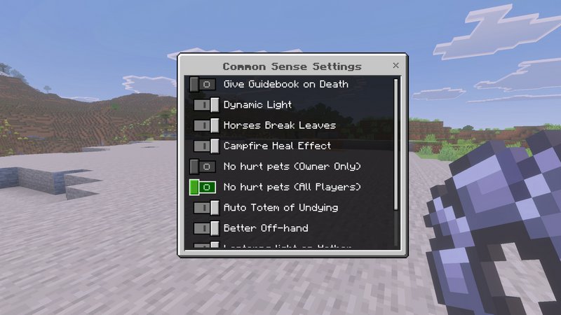 Frequent Sense permits you to craft objects that have been beforehand uncraftable, like Saddles. It additionally permits utilizing Fireworks within the off-hand with Elytra, taming Foxes, Frogs, and Polar Bears, and summoning a mount through a horn. It even unlocks over the shoulder digicam view! I don’t find out about you, however all of this stuff simply make sense to have within the sport.