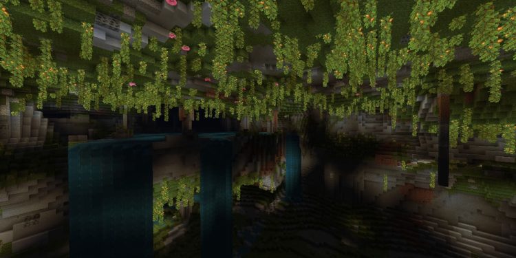 Underground, moss and minerals cowl the flooring and ceilings. On the ceiling, vines with glowing berries develop downward and illuminate the caves, and Spore Blossom develop from the ceiling and drip particles of water. A lush cave accommodates springs and shallow lakes with clay the place Dripleaf develop.